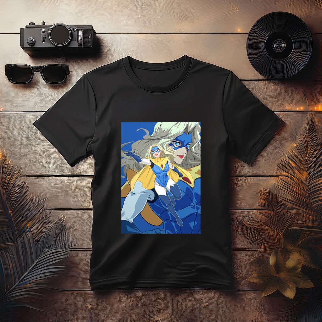 Blonde Blazer Graphic: High-resolution print of a stylish blonde character in a blazer design, adding sophistication and edge to your casual outfits.