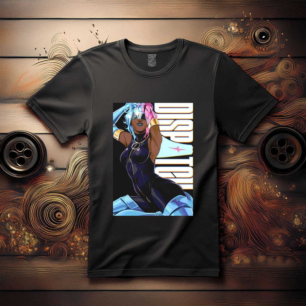 Prism-Inspired Character Design: Features high-resolution artwork of a dynamic character with vibrant prism-style elements, making the shirt visually striking.