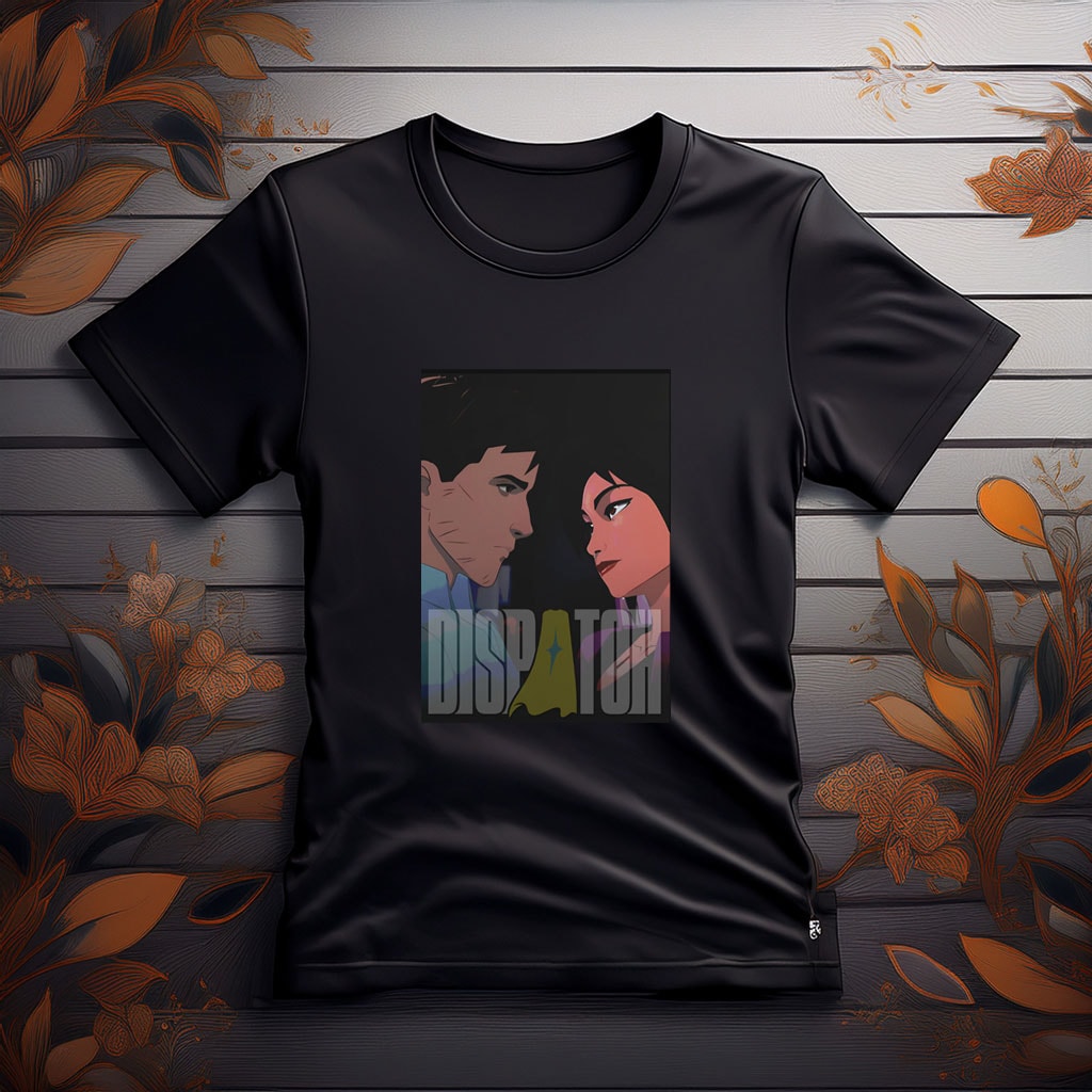 Bring tension, style, and drama to your wardrobe with the Dispatch Couple Stare-Down Shirt. Featuring a striking illustration of a couple locked in an intense stare under the city lights of the Dispatch universe, this tee captures emotion, storytelling, and bold graphic design in one standout piece. Perfect for fans of gaming art, narrative-driven designs, and eye-catching apparel.