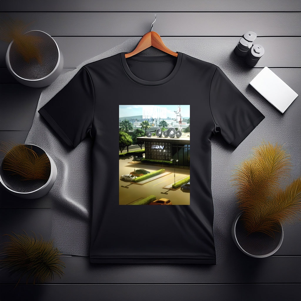 Step into the high-tech world of Dispatch with the SDN Building with Satellite Dishes Shirt. Featuring the iconic Dispatch SDN building surrounded by detailed satellite dishes, this tee captures the essence of innovation, strategy, and the Dispatch universe’s technological edge. Perfect for fans, gamers, and collectors who love dynamic, environment-focused artwork.